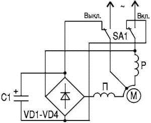 электролитический конденсатор С1, подключенный к пусковой обмотке через диодный