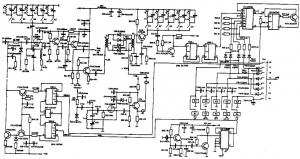 Кварцевый генератор собран на транзисторе VT12, он работает на частоте 5 МГц. На транзисторе VT13 собран формирователь импульсов, которые делит на 10 микросхема D6. На выходе ее получается напряжение образцовой частоты 500 кГц. Собственно, не обязательно применять кварц на 5 МГц, можно использовать кварц на 1 МГц, 2 МГц, при этом вместо микросхемы К155ИЕ2 можно включить делитель на 2 или 4 соответственно на микросхеме К155ТМ2. Впрочем, сосем не обязательно сравнивать именно на 500 кГц, только при этом нужно пересчитать Кдел. ДПКД и частоту работы ГПД. ФД собран на микросхемах D 1, D2 и транзисторах VT5, VT6, VT7.